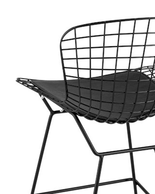 Оригинальная и современная модель барного стула Bertoia прекрасно впишется в любой интерьер дома или ресторана. Спинка и сидение выполнены из металлических прутьев в виде сетки и образуют единое целое. Подушка изготовлена из экокожи в черном цвете. Ножки выполнены из металла, которые плавно переходят в сидение. Такая конструкция стула способна подарить ощущение легкости.