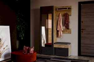 Компактная тумба Livorno НМ 040.63 совмещает в себе функции обувницы и банкетки. Модуль оснащен выдвижным ящиком для размещения в нем повседневной уличной обуви. Под откидной крышкой тумбы скрывается отсек для мелочей. В состав модуля также входит мягкий элемент, который делает процесс сборов комфортным.