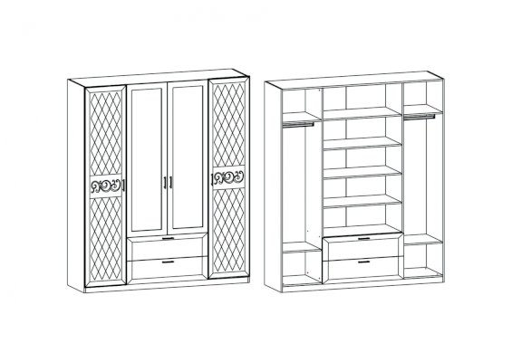 Шкаф 4-х створчатый с зеркалами мод.№1