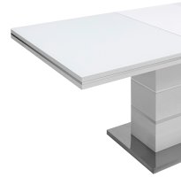 Раскладной обеденный стол белого цвета. Размеры столешницы 160*90 см. Дополнительно раскладывается до 215 см. Стол подойдет для любого современного интерьера.
