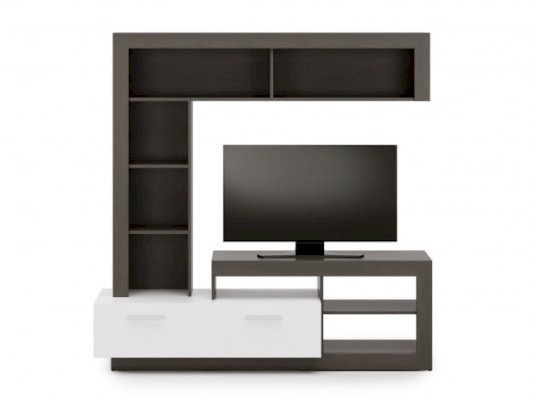 ТВ-тумба с большим выдвижным ящиком и открытыми нишами под мультимедиа превратит гостиную в настоящий домашний кинотеатр. Комбинированный стеллаж с открытой полкой подойдет для книг и предметов декора, способных оживить любой интерьер.
