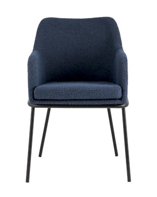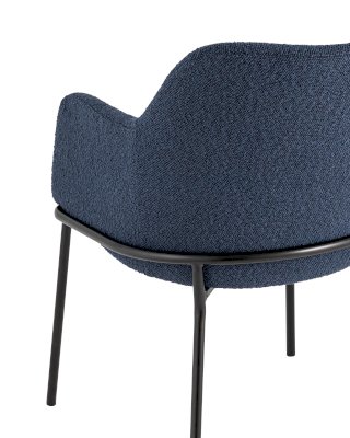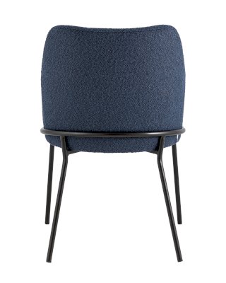 Изящный стул с комфортным сиденьем и спинкой. Основание и ножки черного матового цвета изготовлены из прочного металла. Обивка выполнена из прочной ткани с мягким ворсом в стиле букле, необычная фактура и мягкость добавляют стулу больше уюта.