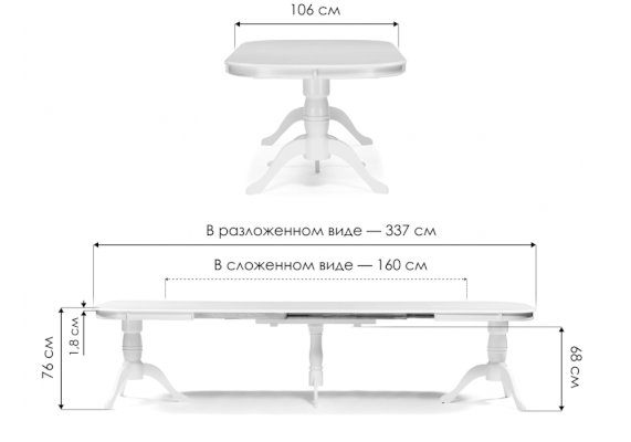 Длина разложенного столика, мм 3370