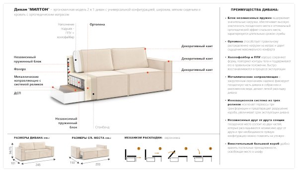 Диван Милтон (Империал) - за 60 776 руб. в Белгороде. Купите на сайте mebelmarket-belgorod.ru или по телефону 8(800)505-30-63 уже сегодня! Уточнить наличие, комплектацию, актуальную цену можно бесплатно у менеджера ежедневно. Закажите Диван Милтон (Империал) до конца акции! Доступна покупка в кредит, рассрочку. Доставим со склада или на заказ.