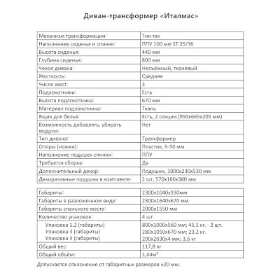 Диван-трансформер Италмас (Аквилон) - за 73 382 руб. в Белгороде. Купите на сайте mebelmarket-belgorod.ru или по телефону 8(800)505-30-63 уже сегодня! Уточнить наличие, комплектацию, актуальную цену можно бесплатно у менеджера ежедневно. Закажите Диван-трансформер Италмас (Аквилон) до конца акции! Доступна покупка в кредит, рассрочку. Доставим со склада или на заказ.