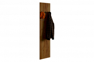 Принт, имитирующий вертикальную фрезеровку придает вешалке уникальный и современный вид, добавляя текстуру и глубину. Материал вешалки – ЛДСП, что обеспечивает прочность и долговечность, а также легкость в уходе.