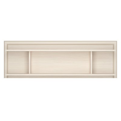 Полка выполнена из ЛДСП цвета «Бодега белый» и декорирована фигурным профилем МДФ в цвет корпуса, а сияние золотой патины придает изделию особый шарм.
