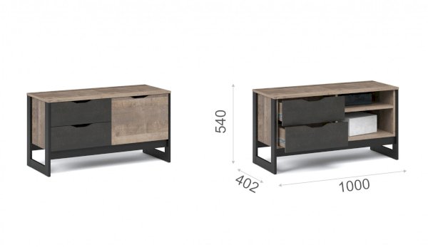 • Оригинальные опоры на торцах боковых стенок в стиле лофт