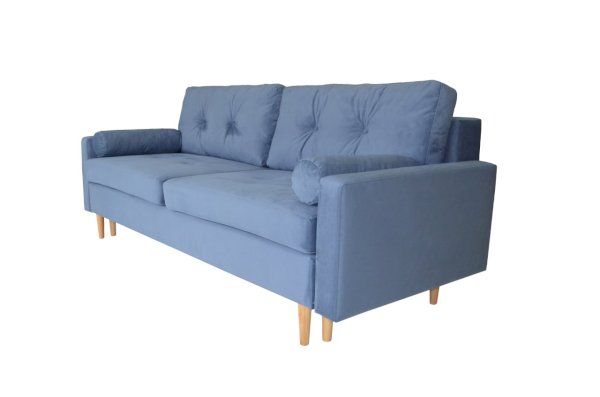 Современный прямой диван из популярной на сегодня серии мебели в "скандинавском стиле". Отличительной особенностью данной модели являются ножки из массива дерева. Что придает дивану легкости и утонченности. Бельевой ящик выполнен из ЛДСП с кромкой. Механизм трансформации "Пантограф" позволяет без особых усилий разложить диван в полноценную кровать с удобным и ровным спальным местом. В основе спального места находится качественный поролон, придающий поверхности упругость и долговечность. В комплекте идут стильные подушки.